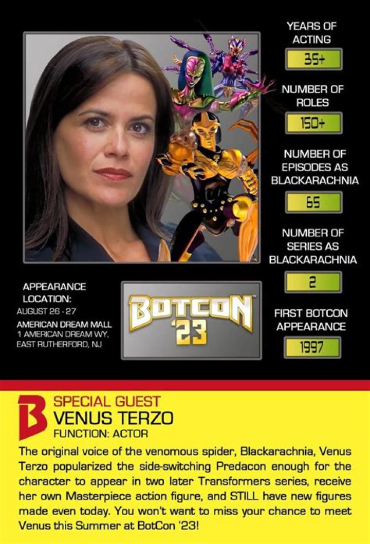 Venus Terzo has voiced several roles in animated shows. They include; Jean Grey in X-Men: Evolution and Blackarachnia in Beast Wars. She has also voiced the female Ranma Saotome from Ranma 1/2.